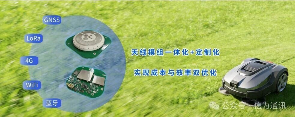Kinvey integrated intelligent antenna solution for robotic lawn mowers